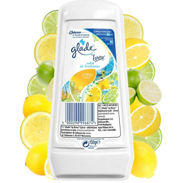 Skutecznie odświeża powietrze we wszystkich pomieszczeniach w domu pozostawiając przyjemny, świeży zapach do około 30 dni. glade by Brise żel to kombinacja wysokiej jakości substancji zapachowych zawartych w żelu i umieszczonych w odpowiednim pojemniku.